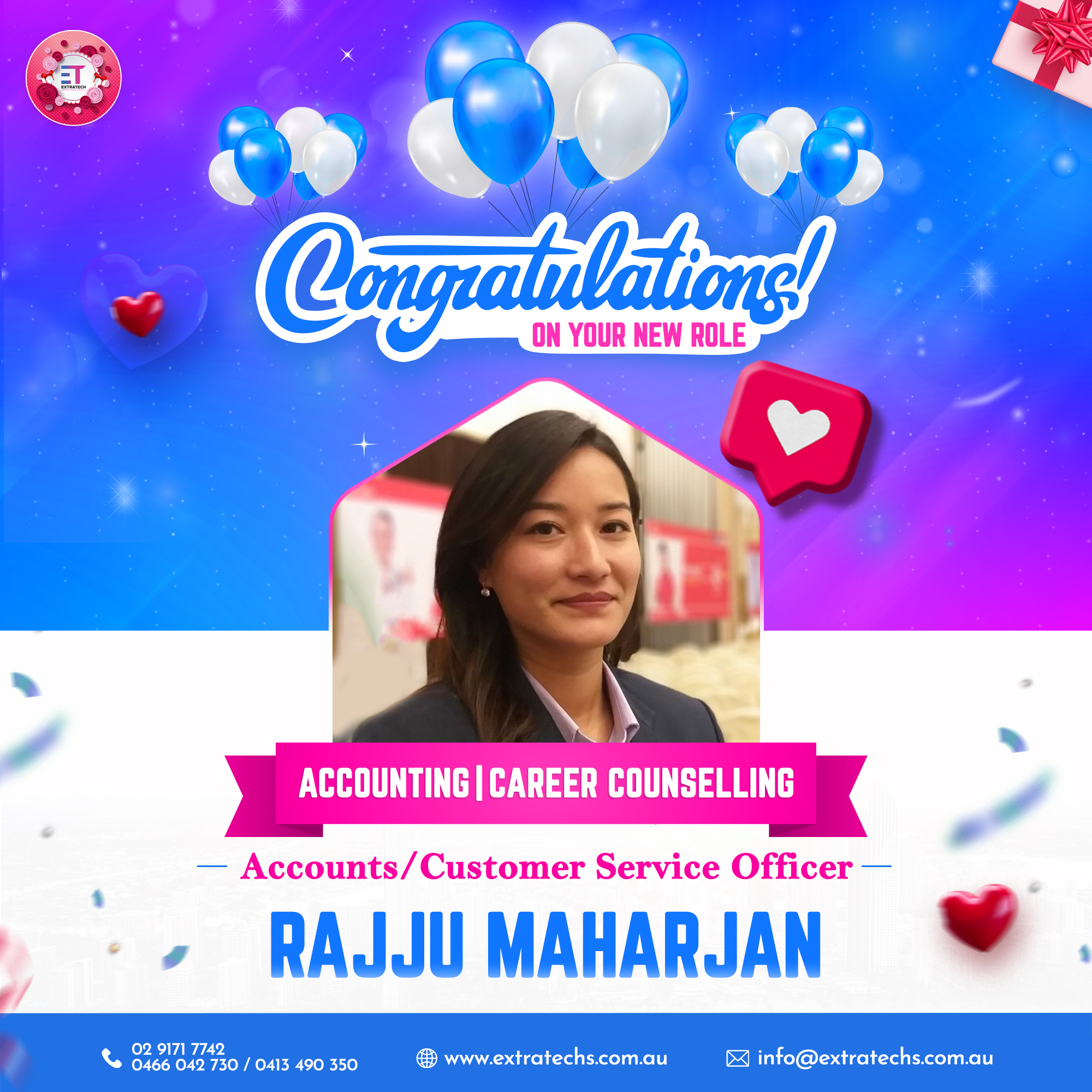 I am sincerely grateful for the dedicated team at Extratech. Their unwavering support and encouragement were crucial in securing a fantastic job opportunity in my desired field. They believed in me and my abilities, which bolstered my self-assurance and made a world of difference in my job search journey.
